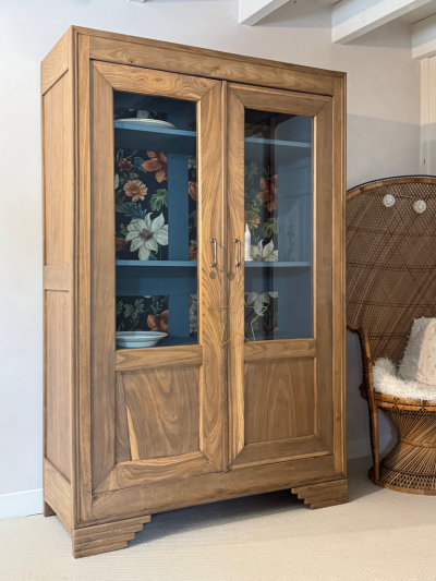Inspirée du style Louis-Philippe, elle séduit par ses lignes sobres et harmonieuses. Sa partie vitrée, plus rare sur ce type de meuble, allège sa silhouette et lui apporte une dimension décorative unique.